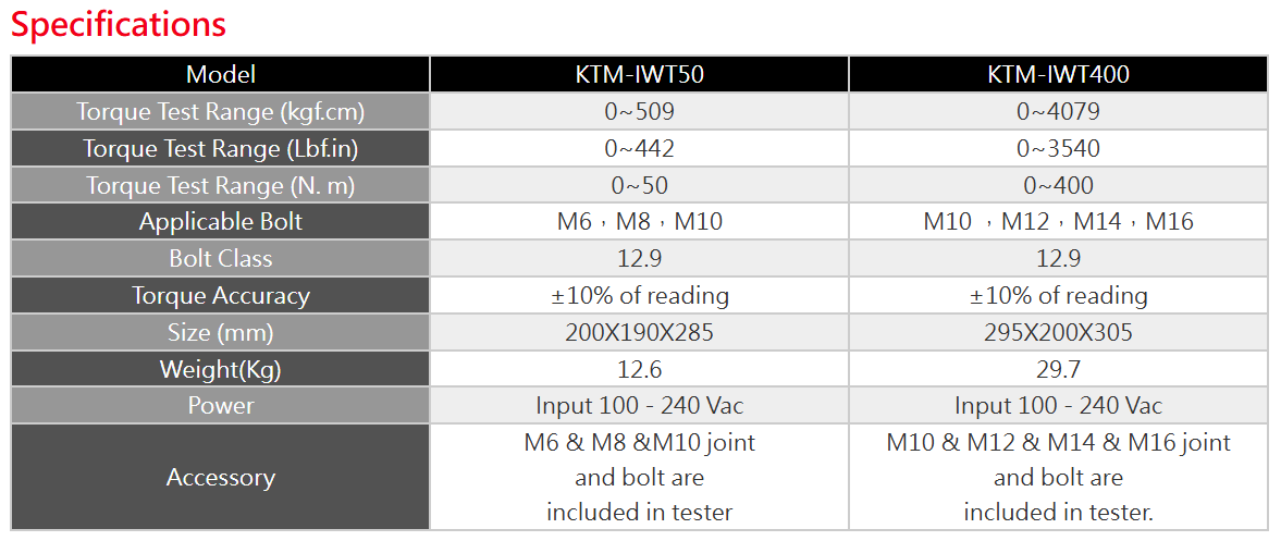 TRANSDUCERIZED IMPACT WRENCH TORQUE TESTER KTM-IWT50/KTM-IWT400