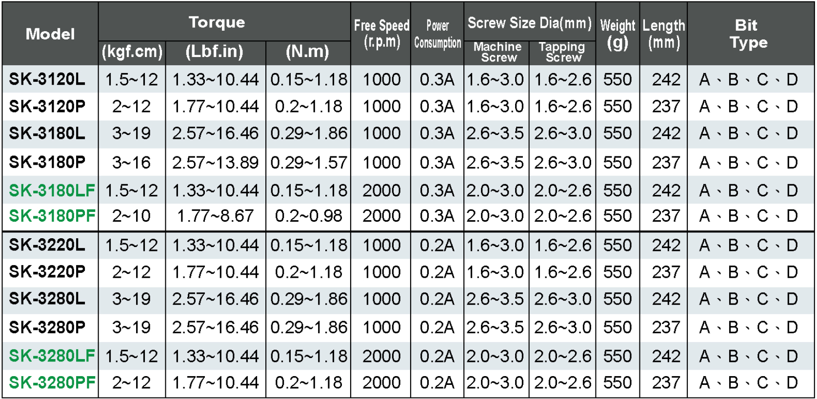 Home Low & Medium Torque Category SK-3 Series
