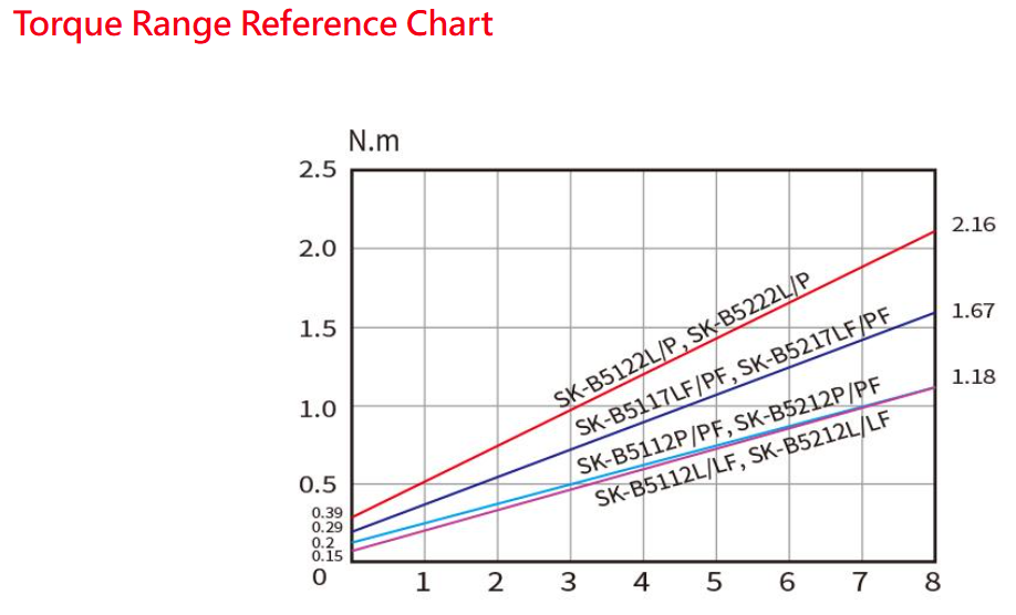 Torque range 1.5~22Kgf.cm.