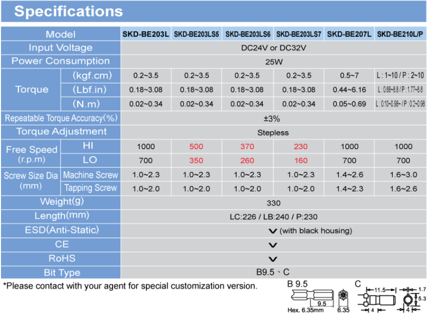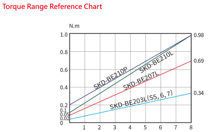 - Torque range from 0.2~10kgf.cm is medium & small-sized screwdrivers. Widespread and extensively applied by users.