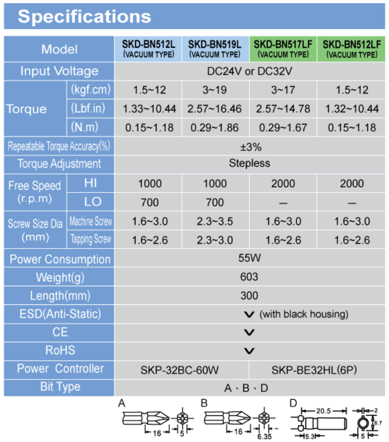 - Vacuum screwdriver was taking the series of SKD-BN500L/P as reference and being created by adding the vacuum head. The main purpose is sucking the non-magnetic screws, such as plastic screws / aluminum-made screws / stainless steel screws and any other screws that does not contain magnetic.